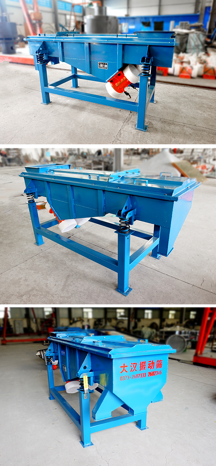產品摘要:DZSF系列直線篩為雙振動電機驅動。當兩臺振動電機做同步、反向旋轉時,其偏心塊所產生的激振力在平行于電機軸線的方向相互抵消,在垂直于電機軸的方向疊為一合力,因此篩機的運動軌跡
